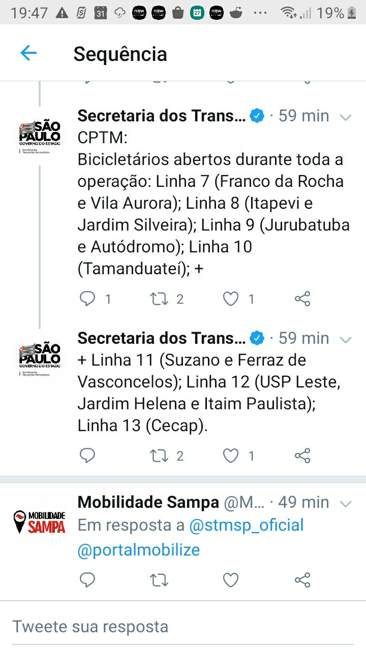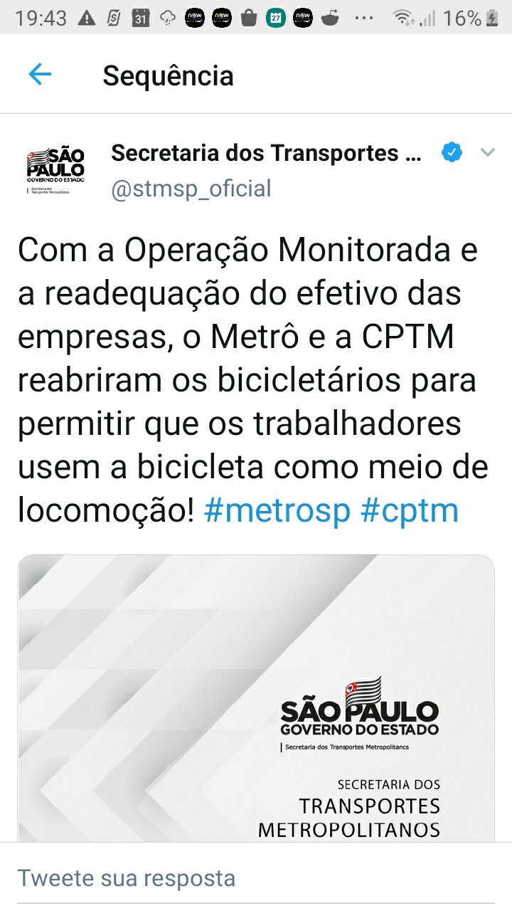 A Secretaria dos Transportes Metropolitanos informou que os bicicletários das estações da CPTM e do Metrô serão reabertos