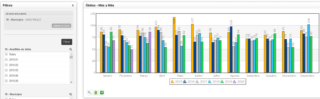 A premissa de que houve menos óbitos nesses sete dias só funciona no entanto em âmbito estadual, pois na cidade de São Paulo a situação é inversa. Nesses sete dias, a capital registrou aumento nas mortes. Foram 15 em 2020 contra 14 em 2019 . É um sinal de alerta para o que está por vir, pois se contarmos o total de óbitos na cidade em todo o mês de março, há clara tendência de alta. Foram 90 os óbitos em março de 2020 contra 65 em 2019 (+38%).