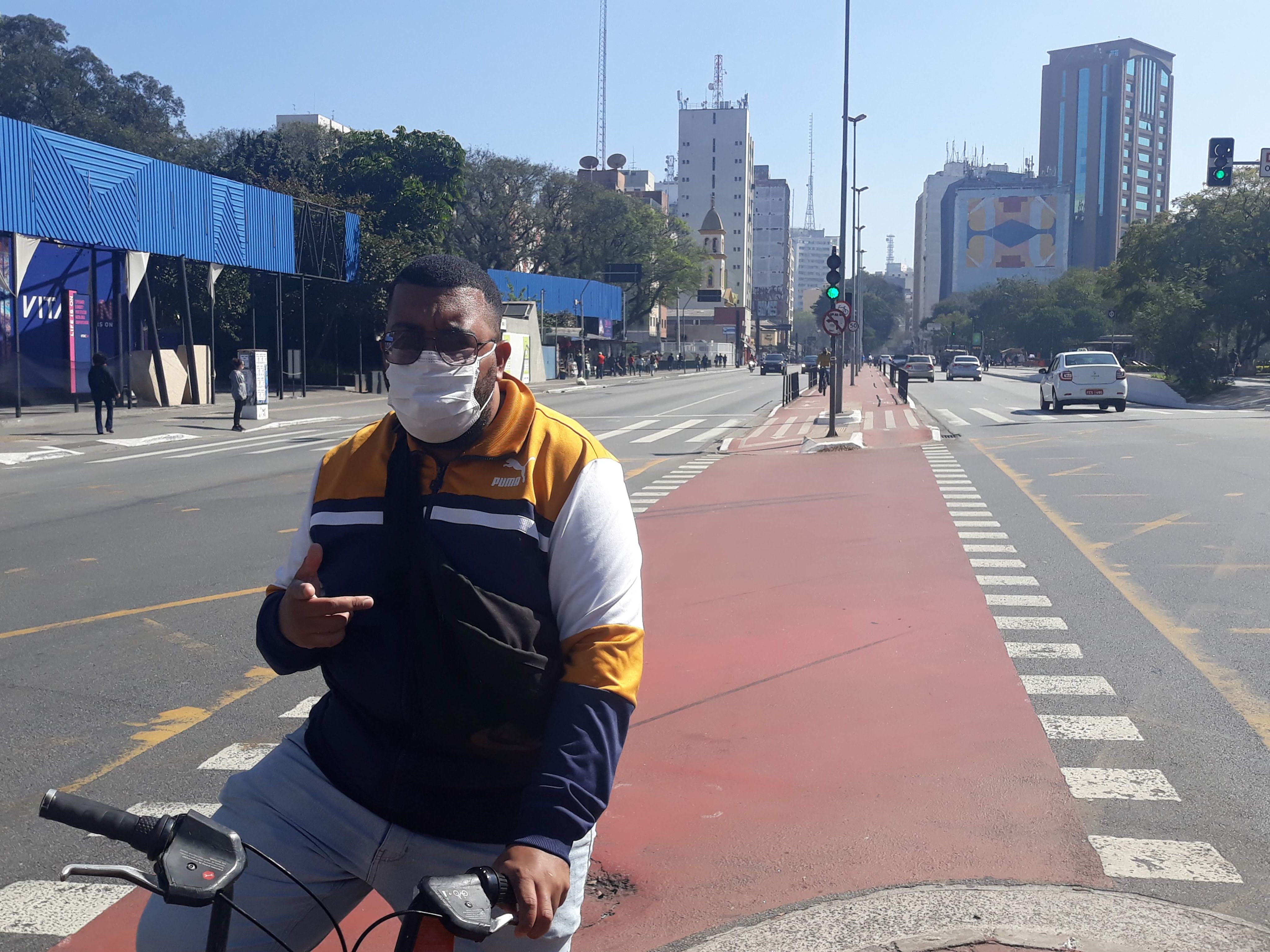 O técnico em enfermagem Bruno Leonardo começou a pedalar pela ciclovia em maio de 2020 para “perder uns quilos e economizar com transporte público”. Ele circula diariamente pelas ciclovias da Vergueiro, Paulista, Consolação e Avenida São João, se deslocando para fazer atendimentos em pacientes residenciais ou dar expediente no hospital em que trabalha.
