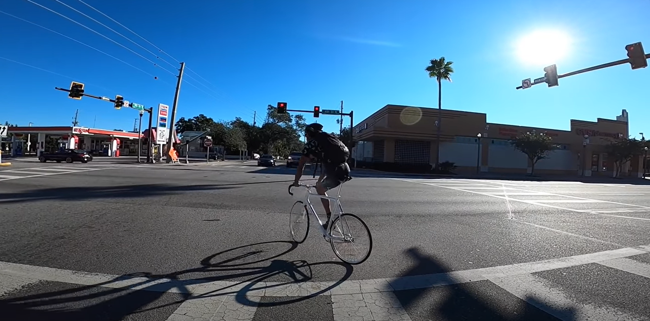 Morador de Tampa (Flórida), Leo Rodgers falou sobre reaprender a pedalar após perder uma perna num acidente de moto – e como pedalar um bicicleta de engrenagem fixa com clipes se tornou não apenas uma alternativa à cadeira de rodas, mas também uma ferramenta para “mudar minha vida e me fazer mais forte.”
