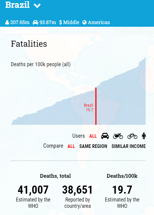 A Organização Mundial da Saúde estima que 1,35 milhão de pessoas morrem todos os anos devido a sinistros viários e os jovens de 15 a 29 anos respondem por 300 mil, ou 22% do total.