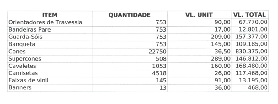 Na proposta da Coranda Publicidade, há uma conta para lá de estranha. O valor de contratação de um orientador de travessia é de R$ 90 reais por diária, enquanto que o custo unitário do guarda-sol é de R$ 209 reais, quase duas vezes e meia mais caro. Já a proposta da Associação Brasileira de Ciclomobilidade não traz nenhum valor de referência, apesar de ser ela a atual responsável pela ciclofaixa como preposta da Uber.