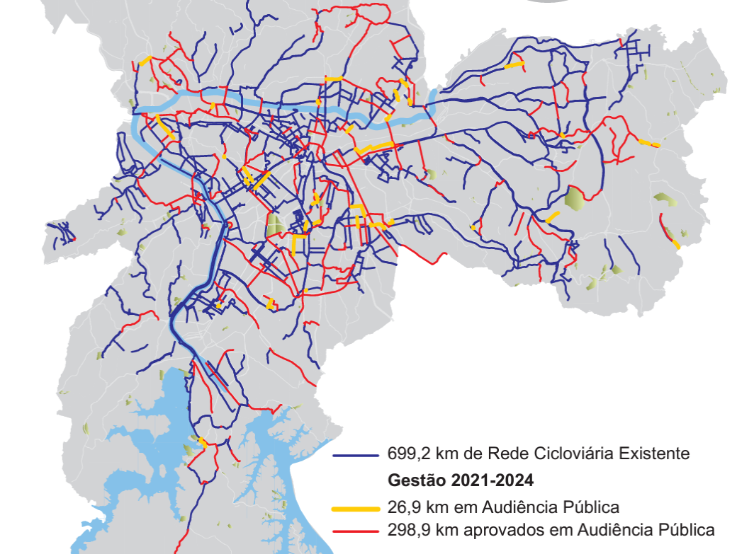A gestão do prefeito Ricardo Nunes (MDB) corre para cumprir com a promessa de instalar 300 quilômetros de novas infraestruturas cicloviárias na cidade de São Paulo até o final do mandato, em 2024.