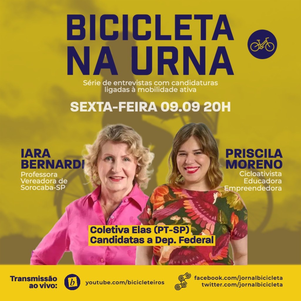 A primeira entrevista será com a cicloativista baseada em São Roque (SP), Priscila Moreno, integrante da Coletiva Elas (PT-SP), uma candidatura conjunta de dez mulheres da região de Sorocaba (SP) encabeçada pela professora, ex-deputada federal e vereadora, Iara Bernardi, que também estará presenta na conversa.
