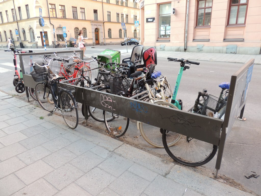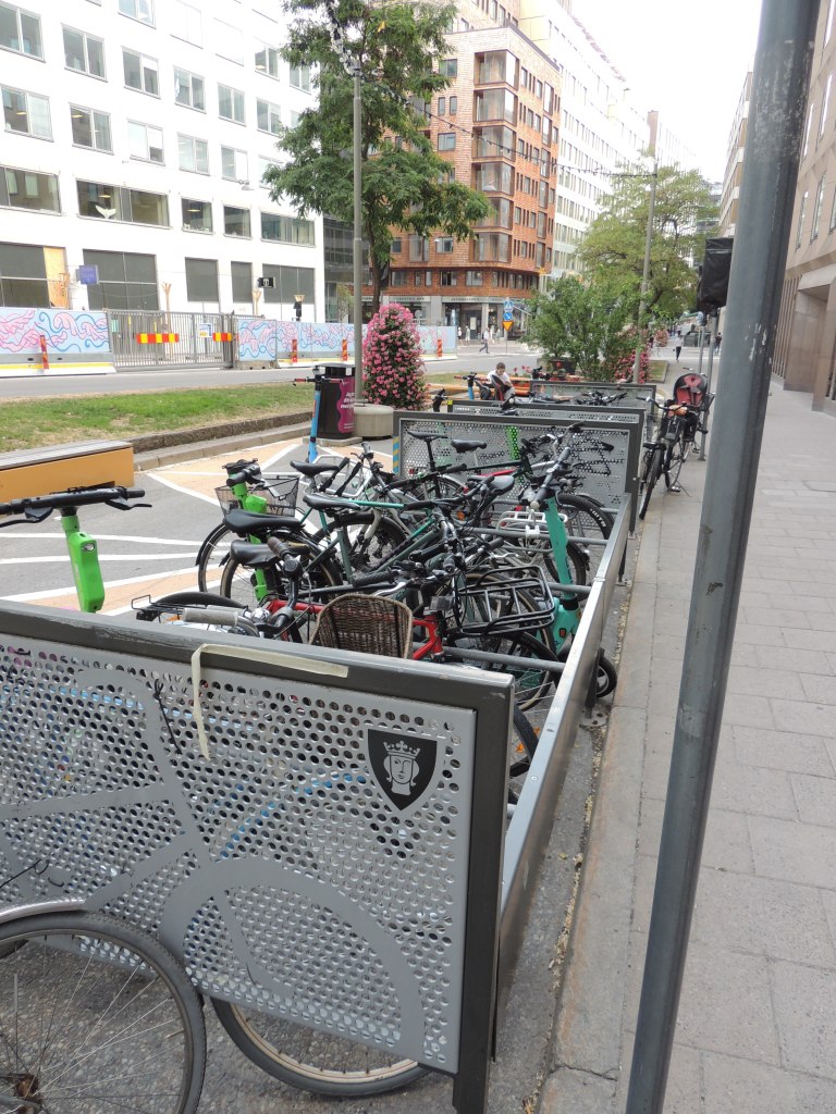 Os paraciclos são fundamentais por lá. Foram instalados mais de 2 mil em 2017 e 2018. Eles estão em todas as estações de trem, ônibus, arenas, parques, prédios comerciais, bairros residenciais. Quase não existem motivos para não usar a bicicleta no capital do Reino da Suécia.