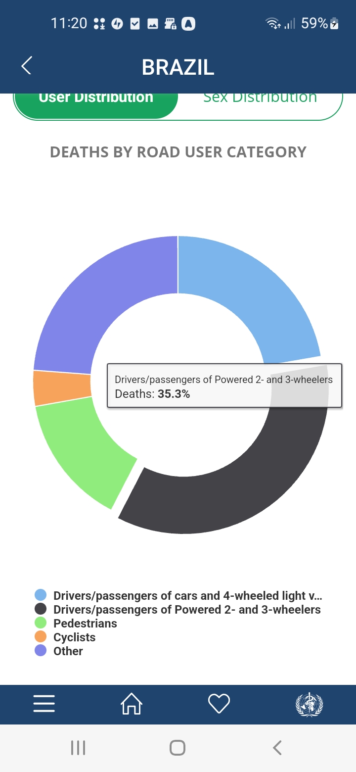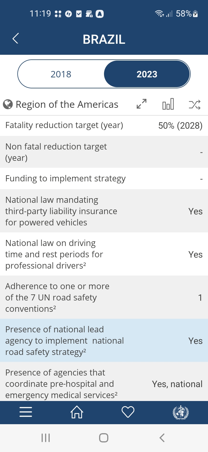 Junto com o Relatório do Status Global de Segurança Viária 2023, a Organização Mundial da Saúde também disponibiliza um aplicativo para celular (em inglês) onde detalha os números das mortes de trânsito reportados por 194 países.