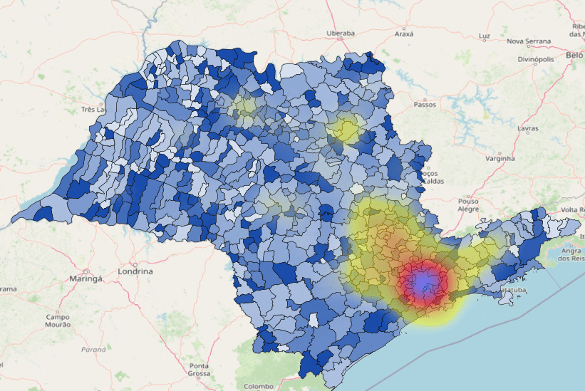 *Imagem de abertura mostra mapa de calor dos óbitos de trânsito no Estado de São Paulo, capturado do Infosiga.