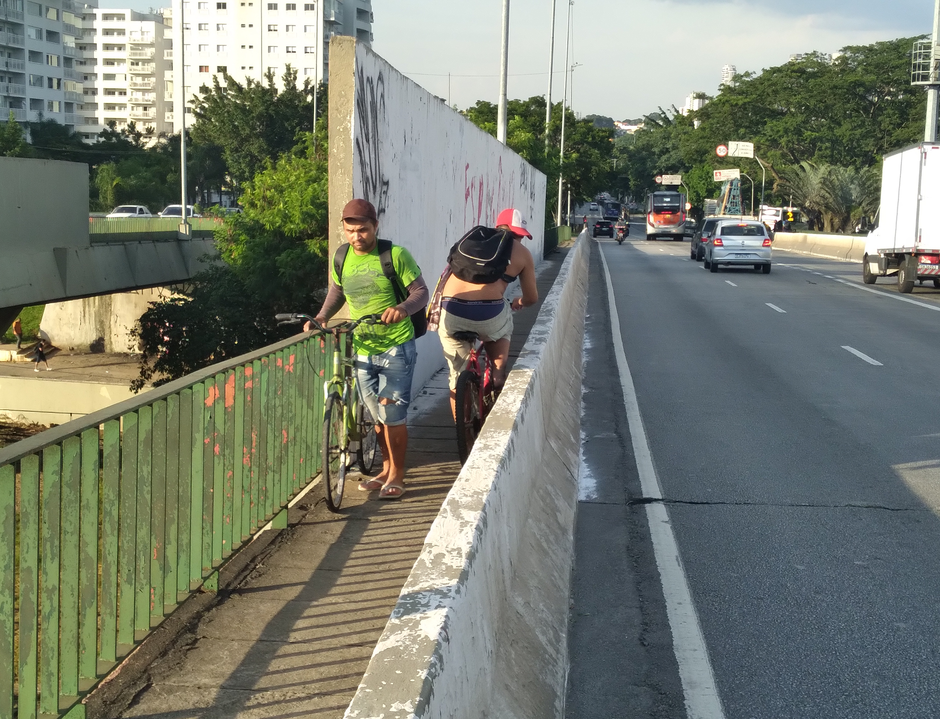 É triste ver que ninguém se dispõe a brigar pela conclusão de outras ciclovias já contratadas e em alguns casos executadas pela metade em contratos que foram assinados quase três anos atrás, como já se brigou pela ciclovia da Avenida Paulista. Há casos já denunciados no Jornal Bicicleta que representam um desperdício de dinheiro público. A do Jaguaré é uma delas. Já se pagou R$ 1 milhão de reais para fazer trechos na avenida Queiroz Filho, que se liga à ponte, mas que são inúteis sem o restante dela. Querem nos empurrar ali um arremedo, um passeio ora usado para manutenção elétrica que não atende ao mínimo exigido pelo manual de implantação de ciclovias usado pela cidade e oferece risco real de queda do ciclista no rio ou na pista da marginal. Há outras que também já receberam dinheiro, mas foram concluídas parcialmente, sem atender às prioridades elencadas por ciclistas em auditorias promovidas pelo município em 2019.