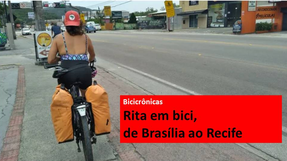 Só que a Rita não é paulistana, não estava em Santos e seu amor não começou nas férias. Ela é uma mulher em bici, pedalando de Brasília à Recife, em meio ao barulho dos caminhões, ao inclemente calor tropical, à fumaça das queimadas que engolfa boa parte do Brasil, com vários objetivos a serem cumpridos e tarefas a serem executadas diariamente nesta jornada de descer ao Recife para prolongar o amor de verão “que não seja imortal, posto que é chama, mas que seja infinito enquanto dure”, como já disse o poetinha Vinicius de Moraes.