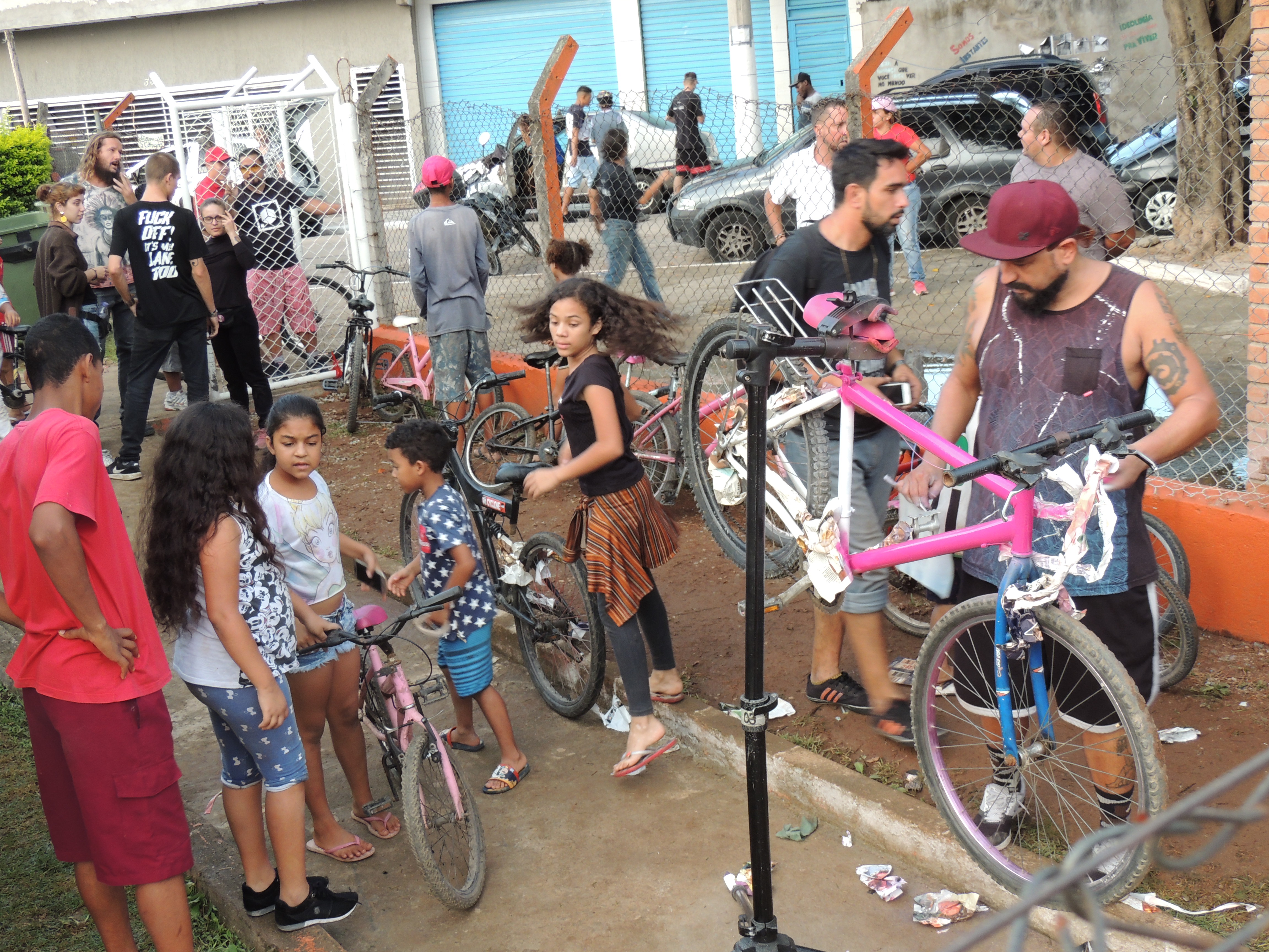 Oficina de pintura de bicicleta realizada no Bike Arte Gira, setembro de 2019 no Jardim Lapena, Zona Leste de São Paulo
