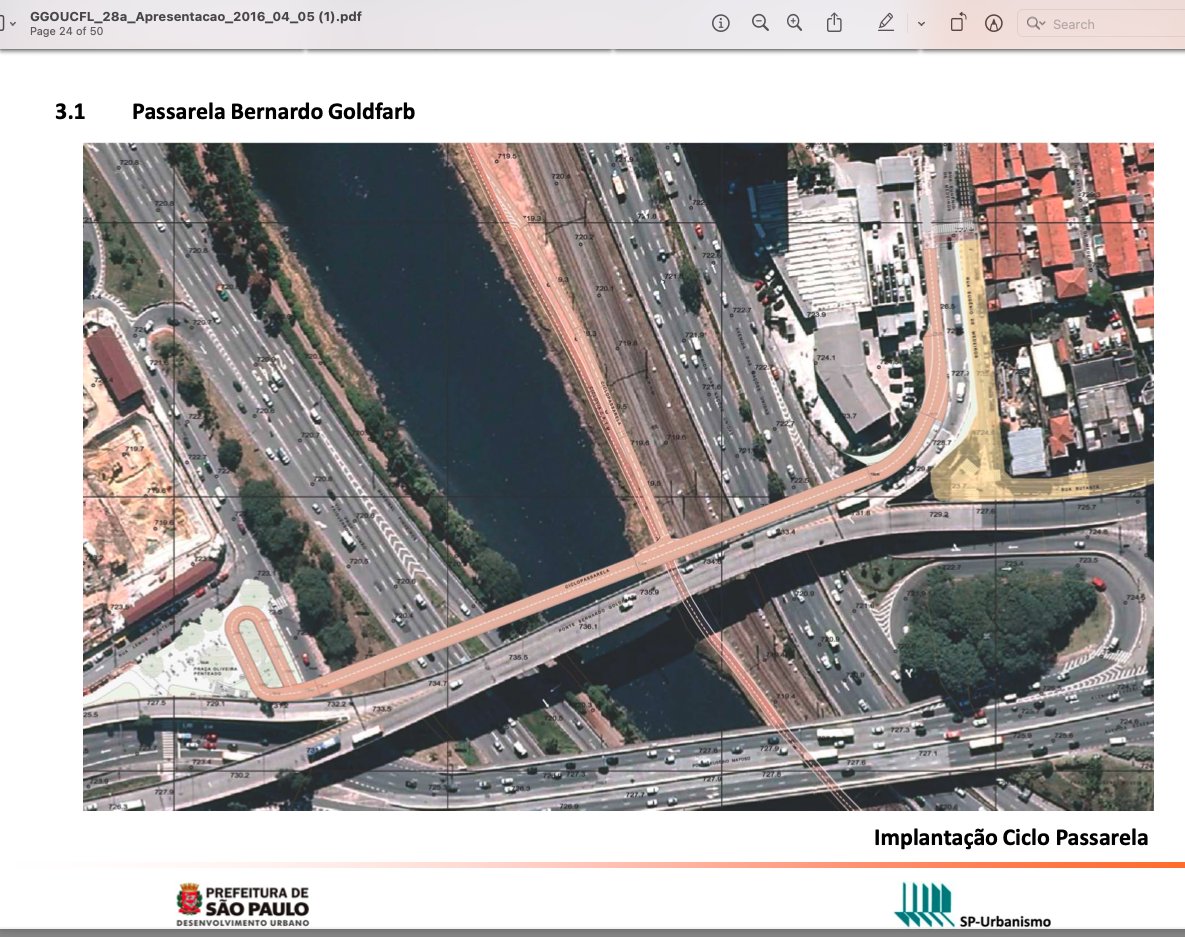 Esta obra demorou exatos 30 anos para virar realidade. A Operação Urbana Consorciada Faria Lima foi gestada em 1994, na gestão do Prefeito Paulo Maluf. A licença ambiental do projeto malufista exigia pelo menos 3 ciclopassarelas atravessando o Rio Pinheiros.