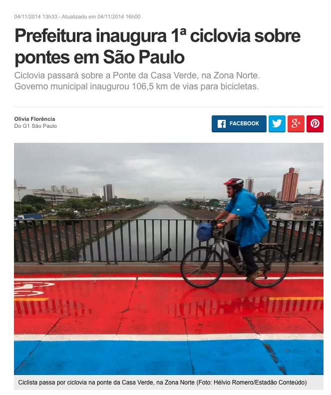 A transposição das pontes sempre foi a principal reivindicação dos cicloativistas da periferia, como o criador do coletivo CicloZN Roberson Miguel (@biosbug) e do movimento Ciclovia Na Periferia. A primeira ponte que ganhou ciclovia foi a da Casa Verde, em 2014.
