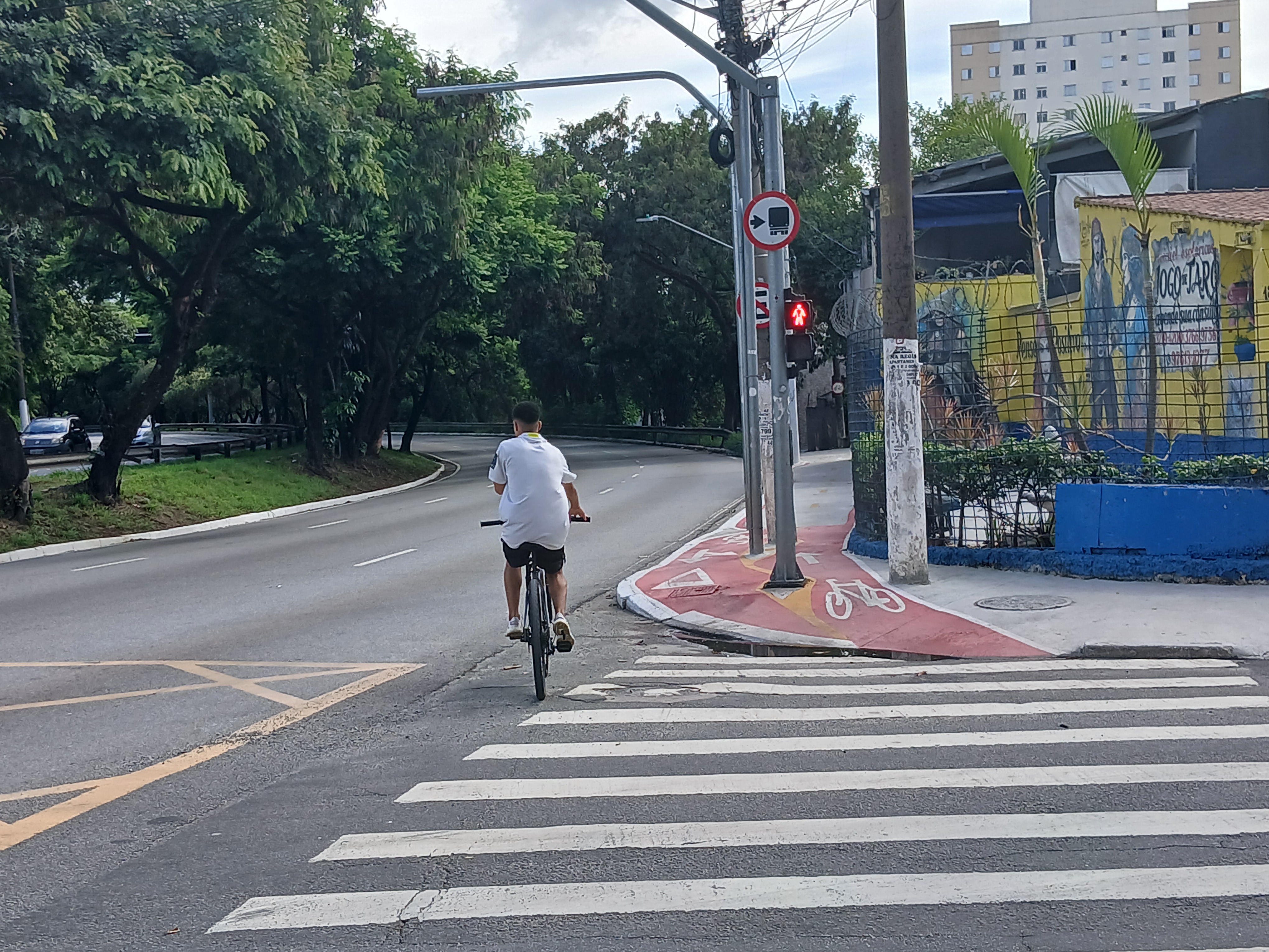 Pintar ciclovias em calçadas com a visível interferência de postes e árvores que reduzem o espaço para a passagem de bicicletas e colocam pessoas em risco, não é novidade nessa administração do prefeito Ricardo Nunes (MDB). É dessa lavra as ciclovias com problema semelhante nas avenidas Queiroz Filho, (Lapa), doutor Abraão Ribeiro (Barra Funda), Águia de Haia (Itaquera), educador Paulo Freire (Pq Novo Mundo) e no cruzamento da Ibirapuera com República do Líbano/Indianópolis, talvez o único local onde os postes foram rearranjados depois que eu escrevi uma reportagem publicada no Estadão Mobilidade e o Bike Zona Sul e Vá de Bike publicaram vídeos. Mas as denúncias só funcionaram porque estão em bairro de gente com um pouco mais de dinheiro e chamam a atenção da grande mídia pois, quando é na periferia, o problema cai no esquecimento.