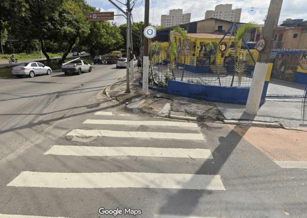 Vale retomar a história da implantação dessa ciclovia de aproximadamente quatro quilômetros que remonta a 2014, durante a gestão do prefeito Fernando Haddad (PT). Naquela época, esse problema dos pirulitos na calçada esquina com a Estrada das Cachoeiras já existia. Os planejadores então sugeriram colocar a passagem de bicicletas na faixa de carros como uma clicofaixa e seguir assim até a avenida a Corifeu de Azevedo marques.