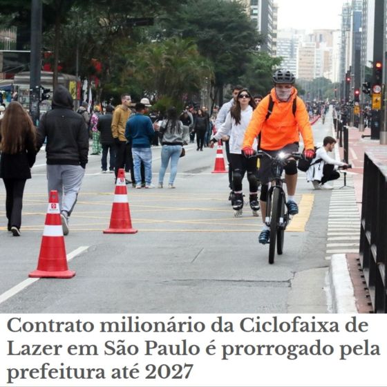 Contrato milionário da Ciclofaixa de Lazer em São Paulo é prorrogado pela prefeitura até 2027