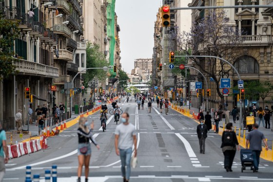 Vereador paulistano criou projeto de lei para estimular uso de bicicletas no pós-pandemia. Na foto, movimento em rua de Barcelona em 25 de maio de 2020