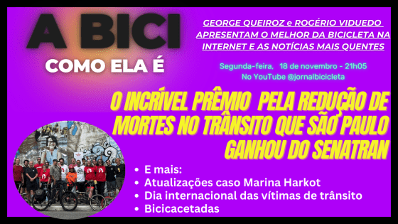 Hoje na live, A Bici como Ela É, no Youtube do Jornal Bicicleta, às 21h05. São Paulo recebeu um prêmio … Mais